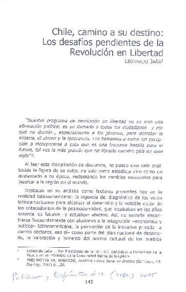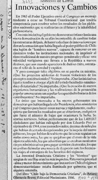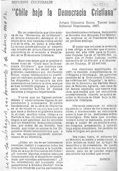 Chile bajo la Democracia Cristiana [artículo] Arturo Olavarría Bravo.