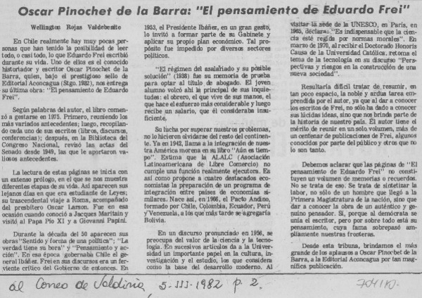 Oscar Pinochet de la Barra; "el pensamiento de Eduardo Frei" [artículo] Wellington Rojas Valdebenito.