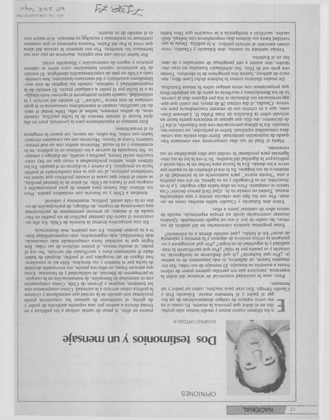 Dos testimonios y un mensaje [artículo] Eugenio Ortega R.