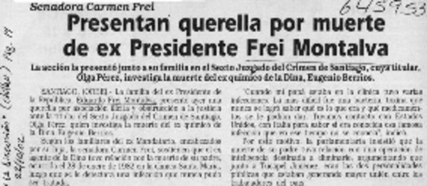 Presentan querella por muerte de ex Presidente Frei Montalva [artículo]