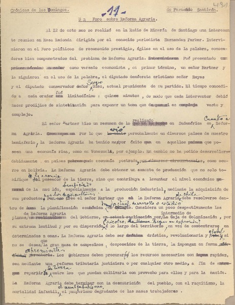Un foro sobre reforma agraria [manuscrito] Fernando Santiván.