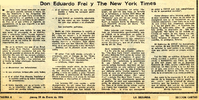 Don Eduardo Frei y The New York Times [artículo] Martín Partarrieu