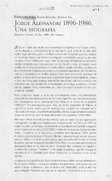 Jorge Alessandri 1896-1986, una biografía [artículo] Mario Schilling F.
