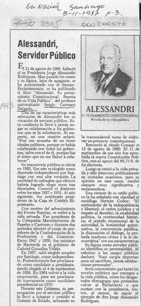Alessandri, su pensamiento constitucional, reseña de su vida pública [artículo] Alejandro Silva Bascuñán.