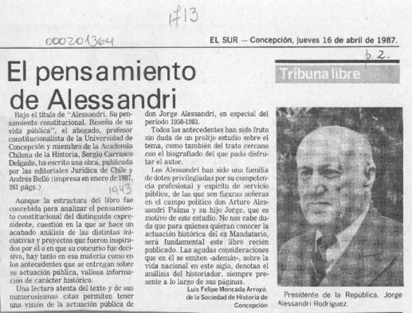 El pensamiento de Alessandri [artículo] Luis Felipe Moncada Arroyo.