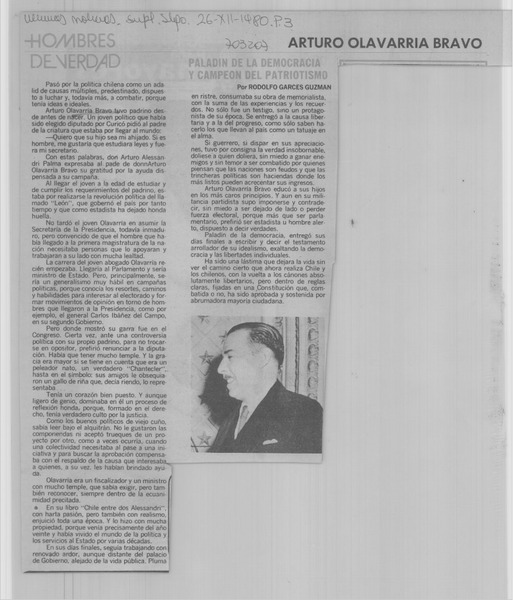 Paladín de la democracia y campeón del patriotismo [artículo] Rodolfo Garcés Guzmán.