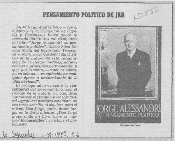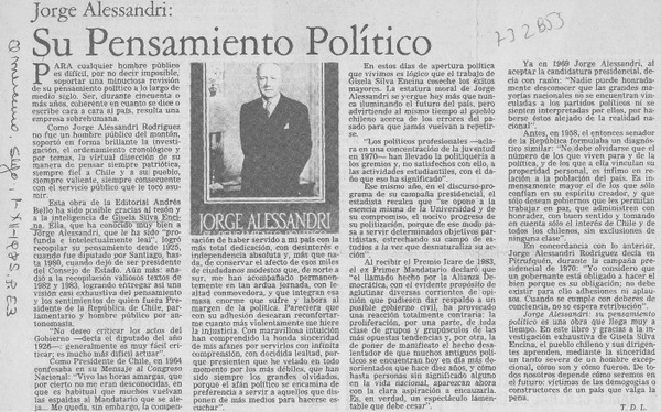 Jorge Alessandri (su pensamiento político) [artículo] A. P.