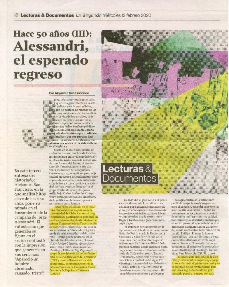 Hace 50 años (III) Alessandri, el esperado regreso [artículo] : Alejandro San Francisco.