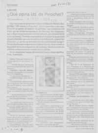 Qué opina Ud. de Pinochet? [artículo] / Patricia Villanueva G. Cauce (Santiago). -- no. 226 (nov. 27, 1989) p. 44-45 retr. .