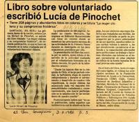 Libro sobre voluntariado escribió Lucía de Pinochet [artículo]. El Sur (Diario : Concepción, Chile)-- feb. 3, 1986, p. 5. retr. .