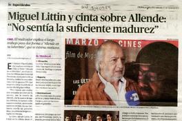 Miguel Littin y cinta sobre Allende: "no sentía la suficiente madurez". [artículo] Crónica Chillán (Diario : Chillán, Chile)-- mar. 25, 2015, p. 26. .