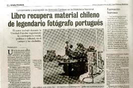 Libro recupera material chileno de legendario fotógrafo portugués [artículo] / Fabián Llanca. Las Últimas Noticias (Diario : Santiago, Chile)-- septiembre 17, 2015, página 38. .