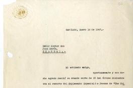 [Carta] 1947 enero 10, Santiago, Chile [a] Juan Marín [manuscrito] Gabriel González Videla.