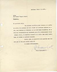 [Carta] 1970 marzo 3, Santiago, Chile [a] Germán Vergara [manuscrito] Jorge Alessandri Rodríguez.
