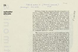 El Premio Nobel de Literatura ha sido otorgado a un chileno "A Pablo Neruda" [artículo] Salvador Allende.