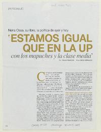 "Estamos igual que en la UP" [entrevista] [artículo] / Paula Palacios. Caras (Revista : Santiago, Chile)-- no 550 (abr. 30, 2009), p. 112-116. .