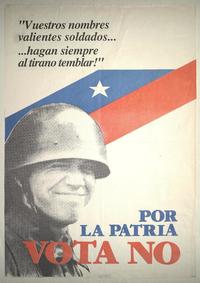 Por la patria vota no "vuestros nombres valientes soldados... hagan siempre al tirano temblar!". [estampa] : [Chile] : [Editor no identificado], [198-?]. 1 cartel (afiche) : color ; 54 x 38 cm. .