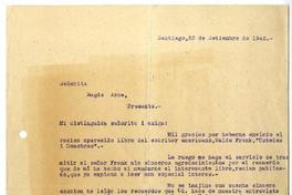 Santiago, Chile [a] Magda Arce carta, 1942 Septiembre 25, [manuscrito] Arturo Alssandri Palma.