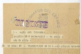 Brasil [a] Magda Arce Fernández, Universidad de Chile Telegrama, 1949, [manuscrito] Gabriel González Videla.