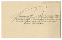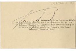 Santiago, Chile [a] Salvador Reyes, Tarjetas, 1954 y 1967, [manuscrito] Gabriel González Videla.