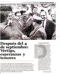 Después del 4 de septiembre: vértigo esperanzas y temores [artículo] Alejandro San Francisco.