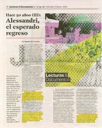 Hace 50 años (III) Alessandri, el esperado regreso / [artículo] : Alejandro San Francisco. La Segunda (Diario : Santiago, Chile)-- feb. 12, 2020, p 16-18. .
