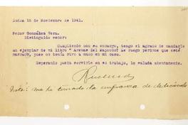 5 cartas : Santiago, Chile, 6 de abril de 1941 / Pedro Aguirre Cerda (1 tarjeta) -- San Fernando, Chile, 29 de septiembre de 1941 / Alfonso Ortega Frías (1 hoja) -- Washington Estados Unidos, 2 de octubre de 1941 / Francisco Aguilera (1 hoja) -- Valparaíso, Chile, 15 de noviembre de 1941 / Zoilo Escobar (1 hoja) -- Santiago, Chile, 15 de noviembre de 1941 / Ricardo Puelma (1 hoja).