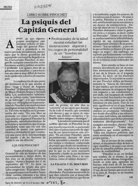 Cien chilenos manifiestan lo que piensan sobre Pinochet [artículo] Manuel Salazar.