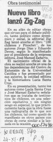 Presentan libro "100 chilenos y Pinochet" [artículo].
