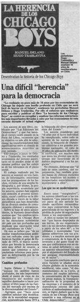 Lanzan libro sobre "La herencia de los Chicago boys" [artículo].