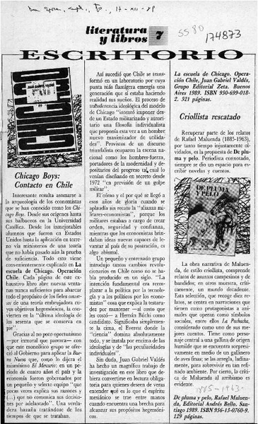 Autores chilenos - Maluenda, Rafael - Valdés, Juan Gabriel - De pluma y pelo - La Escuela de Chicago. Operación en Chile