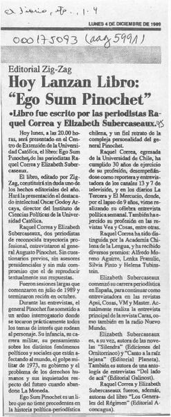 Hoy lanzan libro "Ego sum Pinochet" [artículo].