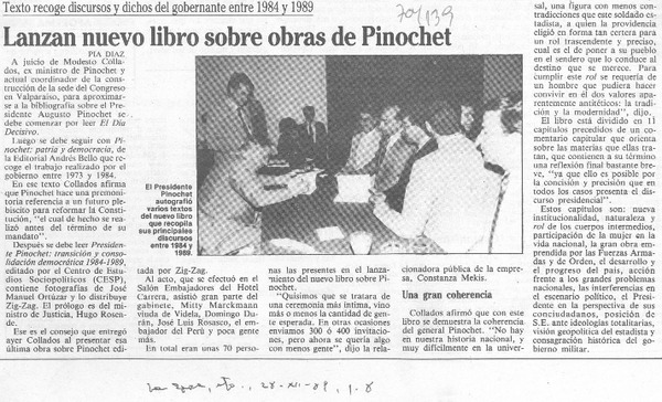 Lanzan nuevo libro sobre obras de Pinochet. [artículo]