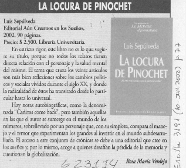 La locura de Pinochet [artículo] Rosa María Verdejo
