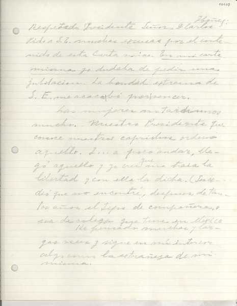 [Carta] 1922 oct. 3, México [a] Pedro Aguirre Cerda, Chile [manuscrito] Gabriela Mistral.