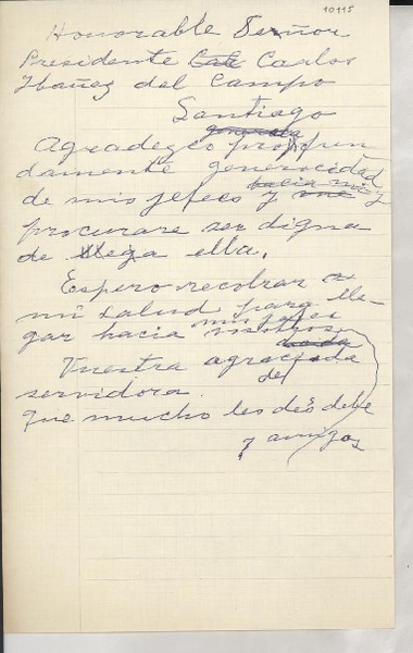 Ibáñez del Campo, Carlos - Poetisas chilenas - Mistral, Gabriela - Manuscritos chilenos - Correspondencia