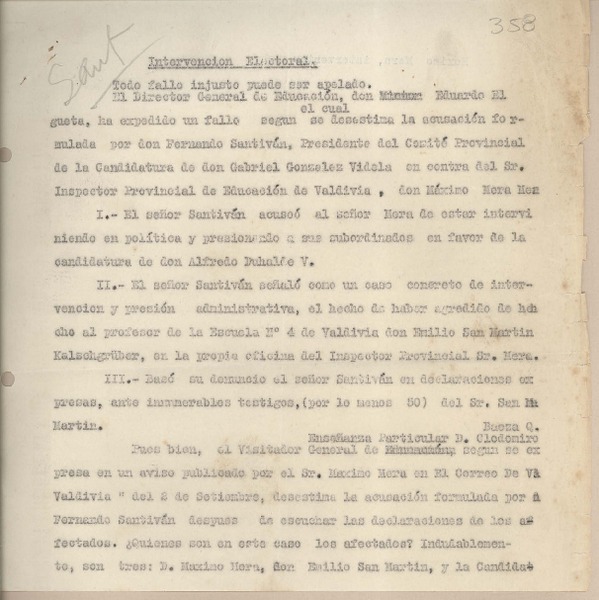 Morales, Raúl - Correspondencia - Manuscritos chilenos - González Videla, Gabriel