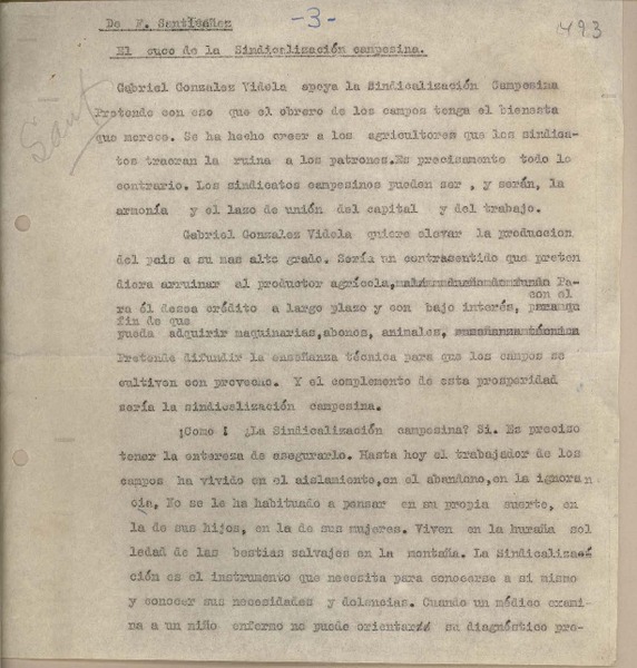 Un foro sobre reforma agraria [manuscrito] Fernando Santiván.