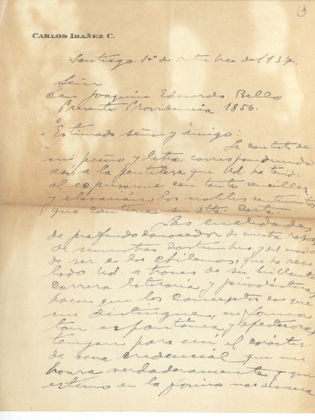 Correspondencia - Ibáñez del Campo, Carlos - Edwards Bello, Joaquín - Manuscritos chilenos - Autores chilenos