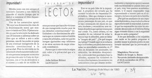 Palabra de lector [artículo] Salinas Bittner, Julio.