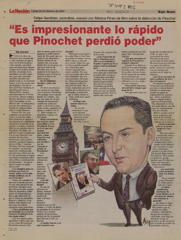 Autoras chilenas - Pérez, Mónica - Entrevistas - Autores chilenos - Augusto Pinochet, 503 días atrapado en Londres - Gerdtzen, Felipe