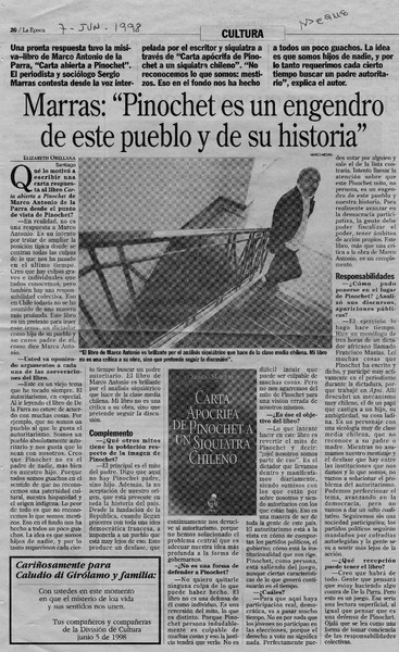 Marras, "Pinochet es un engendro de este pueblo y de su historia" [artículo] Elizabeth Orellana.