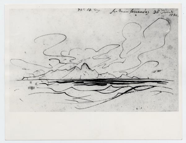 [Dibujo de la isla, titulado "Islas Juan Férnandez. 30 de Junio 1834"] [fotografía].
