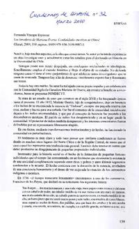 Los herederos de Mariana Osorio. Comunidades mestizas Olmué [artículo] / Sergio Villalobos R. Cuadernos de Historia (Universidad de Chile. Departamento de Historia) (Revista : Santiago, Chile)-- no. 32 (mar. 2010), p. 139-140. .