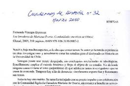 Materias: Autores chilenos - Venegas Espinoza, Fernando - Los herederos de Mariana Osorio. Comunidades mestizas Olmué