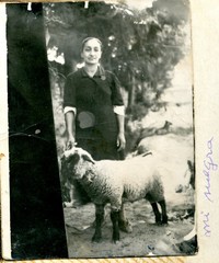 Eudocia Mauna sujetando un cordero [Fotografía]