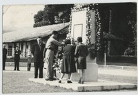 Entrega de ofrenda floral en acto de conmemoración del aniversario de fallecimiento de don Pascual Baburizza Soletic : Hugo Jordán [Fotografía]. Chile : [Editor no identificado] , [1950]. 1 Fotografía : Formato digital. .