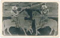 Huasos a caballo [Fotografía]. Chile : [Editor no identificado] , [1960]. 1 Fotografía: Formato digital, Negativo .