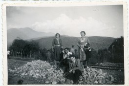 Blanca Elena Clavijo Maturana junto a otras personas al costado de la línea del ferrocarril : [Fotografía]. Chile : [Editor no identificado] , [1925]. 1 Fotografía : Formato digital. .