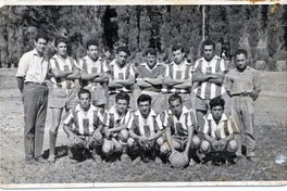 Equipo de futbol "Los Chefs" : Hernán Droguett, Felipe González, Rumildo Ahumada, Manuel Silva, Miguel Santibañez, Victor Silva, Eugenio Caiceo, Juan Soto, Luis Silva, Victor Osorio, Roberto Vásquez, Mario Silva, Claudio Ortega [Fotografía].
